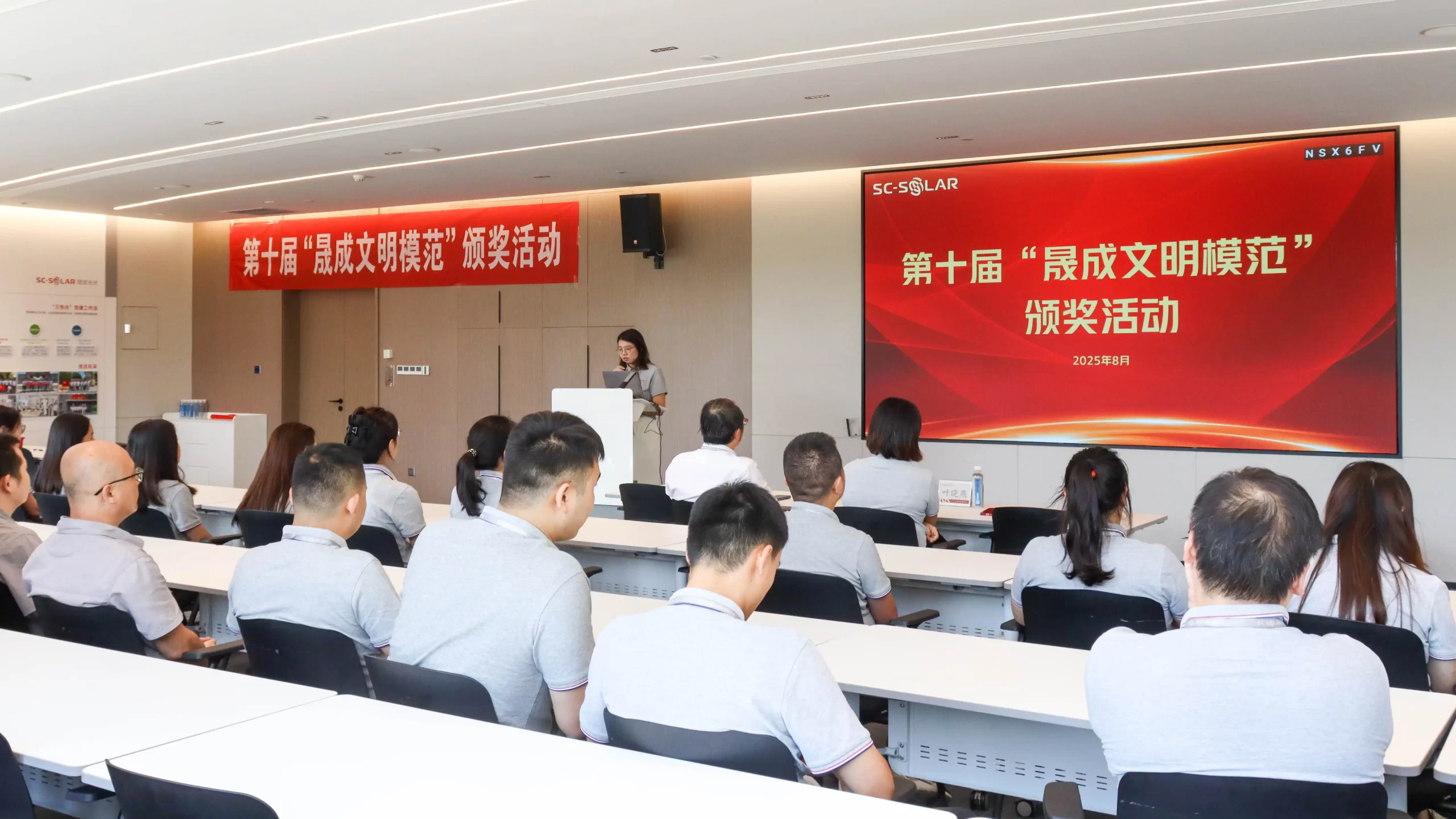 近期,晟成光伏第十届“晟成文明模范”颁奖典礼隆重举行。公司领导及全体获奖员工齐聚一堂,共同见证这一具有纪念意义的时刻。